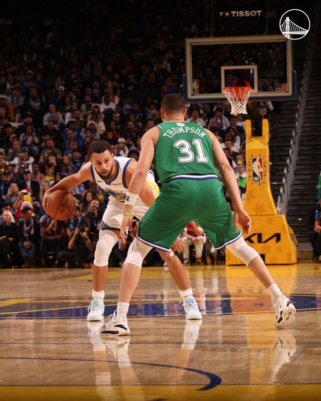 勇士隊的穆迪和霍福德上半場各得到12分,庫裏得到10分和3次助攻;獨行俠隊的馬紹爾得到12分,弗拉格得到12分和5個籃板。